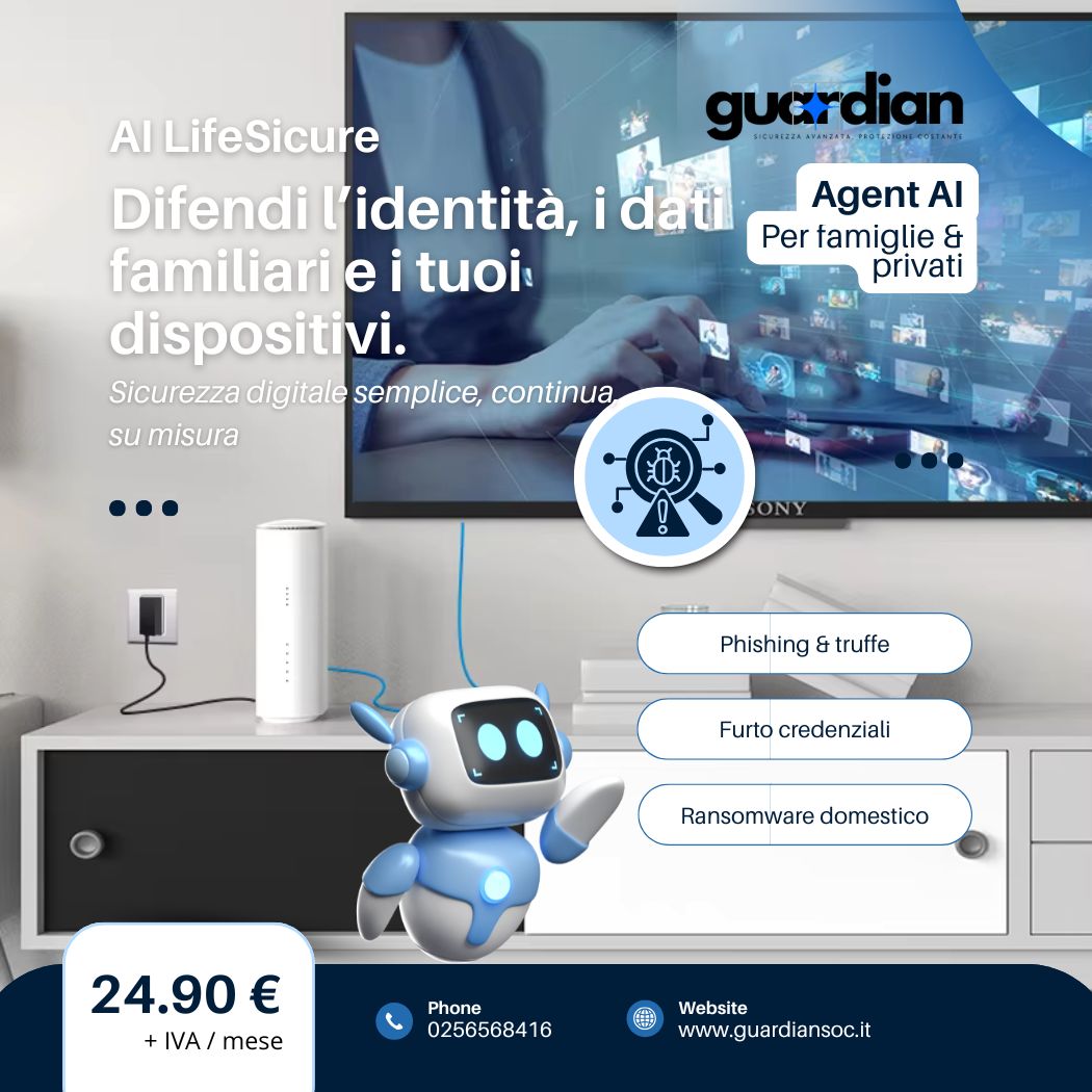 Difendi l’identità, i dati familiari e i tuoi dispositivi. LifeSicure estende l’esperienza del nostro SOC a un servizio chiavi in mano per persone e nuclei familiari: monitoraggio AI proattivo, assistenza in caso di incidente e linee guida pratiche per vivere la tecnologia in sicurezza.